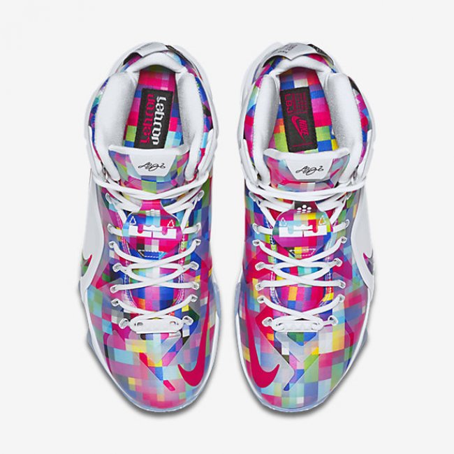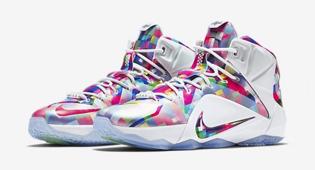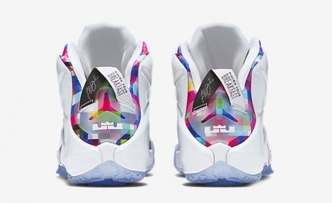 LeBron 12 EXT “Prism” 将 LeBron 10 “Prism” 棱镜配色的内衬在鞋面以多彩马赛克呈现,缤纷夺目的视觉效果自然是亮点之一。后跟鞋提处的 Finish Your Breakfast 字样则是来源于街头篮球传奇人物 John Strickland,他是纽约街头篮球界最有名气的前锋,于 2010 年病逝,享年 38 岁。他也是 Jay-Z 的好友,曾经出现在后者的单曲中,My homey Strick told me, ‘Dude finish your breakfast,’ so that’s what I’ma do…