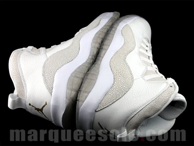 Drake 加入 Jordan Brand 后的杰作终将登场,Air Jordan 10 “OVO” 白金配色将在今年秋冬季正式市售,货量不大,但是精美的细节呈现为这款 OVO 版本的 Air Jordan 10 注入了十足的看点。白色鞋身辅以珍珠鱼皮材质,细节的金色装扮则以反差效果凸显视觉抓力。