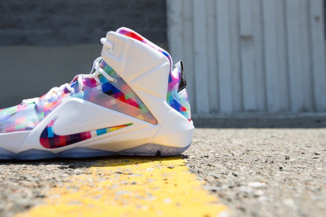 致敬纽约街球名宿,LeBron 12 EXT “Finish Your Breakfast” 将 LeBron 10 Prism 棱镜配色的多彩元素更加全面的覆盖,缤纷的马赛克纹理搭配白色的 Posite 凸显亮点。 货号:748861-900 发售日期:7 月 18 日
