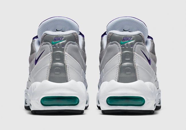 在 20 周年之际,NSW 再次将葡萄装扮的 Nike Air Max 95 “Grape” 元年配色带回。以深浅灰色条纹凸显 Air Max 95 有节奏的层次感受,搭配白色中底和黑色外底,而鞋舌和细节的紫色装扮则画龙点睛,点亮了整体视觉感受,活力凸显。