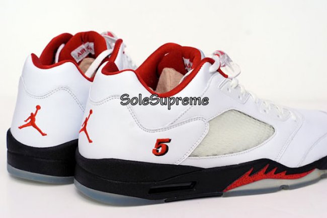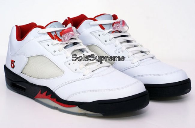Air Jordan 5 上最为经典的 Fire Red 白红配色或将登陆 Air Jordan 5 Low 低帮鞋型,这款 Air Jordan 5 Low “Fire Red” 曾经以德里克安德森的 PE 专属鞋款亮相,并未进行过市售。
