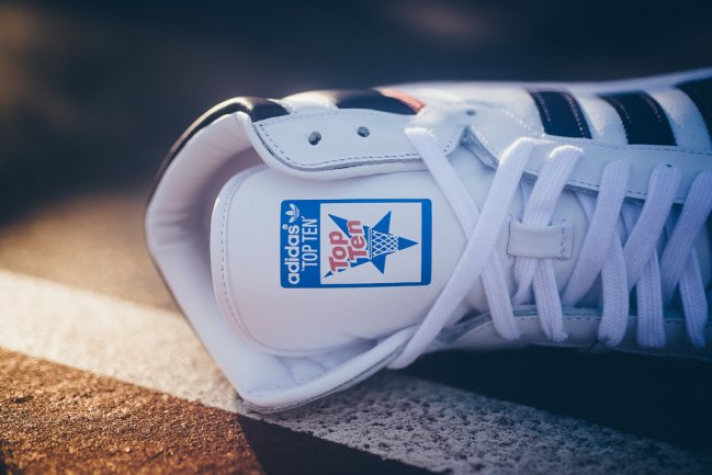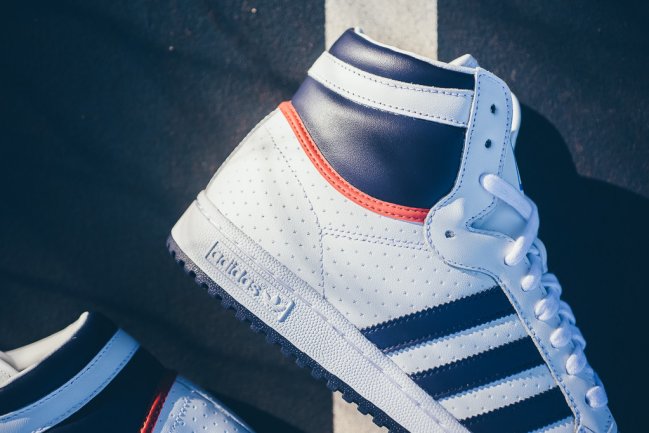 adidas 旗下经典的高帮复古运动鞋 adidas Top Ten Hi 带来全新配色的发售,经典的复古装扮依旧,采用白色皮革作为鞋身主体,细腻的鞋面十字装扮凸显精致感受,辅以海军蓝点缀,少许的红色装扮更显亮点。 发售价 $100 美元,请有兴趣的朋友关注。