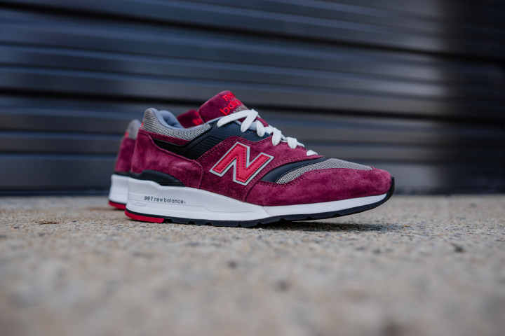 Made in USA 美产系列再次引来精品配色的发售,在 New Balance 997 鞋型上分别以灰色和酒红麂皮打造,点缀鲜艳的红色细节,层次感十足而白色 ENCAP 中底凸显运动活力,在视觉体验和运动性能双方面都取得平衡。