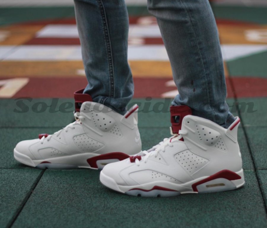 白色鞋身选用褐红点缀,Air Jordan 6 “Maroon” 的上脚以白鞋装扮带来简约的活力感受,而恰当好处的简单点缀,在不破坏清爽感受的同时,又注入了新的亮点,简简单单的营造出十足的视觉冲击力。 后跟上的 Nike Air 刺绣自然是此次复刻的重中之重,把我们又带回到了 1991 年,众多场景显现眼前。 将于 10 月份正式复刻发售,而售价也有所提升,将以 $220 的发售价登场! 货号:384664-116 发售日期:10 月