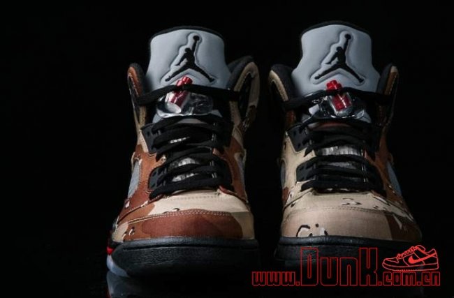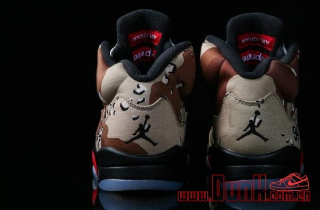继续带来沙漠迷彩配色 Supreme x Air Jordan 5 “Camo” 实物图赏,以 Air Jordan 5 “Fire Red” 为蓝本,经典的黑红中底和 3M 反光鞋舌经典回归,而迷彩鞋面和 Supreme 元素的融入则是亮点中的亮点。 带来 DUNK.com.cn 呈现的实物图片。 货号:824371-201