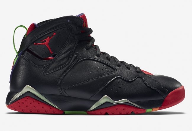 真正的火星人马丁配色登场,十足的质感和精良的做工,以熟悉的黑红装扮在 Air Jordan 7 鞋型上完美呈现,细节的绿灰点缀带来新的层次感受,上脚穿搭效果自然是不俗,8 月发售的重量级角色,想必入手难度指数也不会打折。