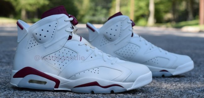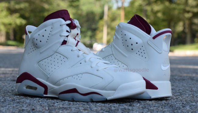 白色鞋身选用褐红点缀,Air Jordan 6 “Maroon” 的上脚以白鞋装扮带来简约的活力感受,而恰当好处的简单点缀,在不破坏清爽感受的同时,又注入了新的亮点,简简单单的营造出十足的视觉冲击力。 后跟上的 Nike Air 刺绣自然是此次复刻的重中之重,把我们又带回到了 1991 年,众多场景显现眼前。 将于 10 月份正式复刻发售,而售价也有所提升,将以 $220 的发售价登场! 货号:384664-116 发售日期:10 月