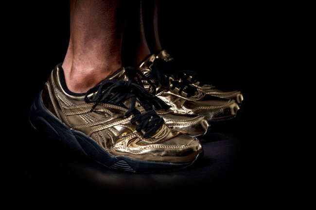 PUMA 携手纽约创意设计师 Vashtie Kola,联合打造了一系列合作产品,其中的 Vashtie x PUMA Trinomic R698 “Gold” 以液态金属质感的金色漆皮鞋面,搭配黑色鞋底,带来奢华感十足的潮流体验。 同其他品牌的液态金属系列类似,该系列也仅提供女款尺码。