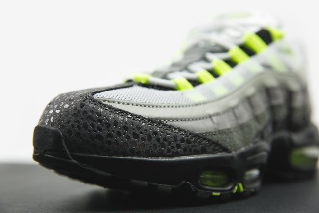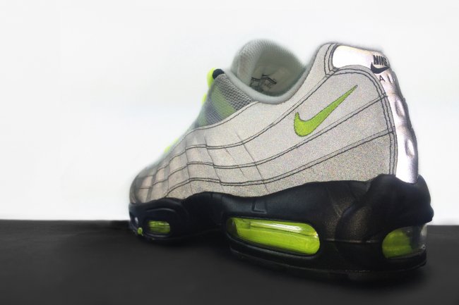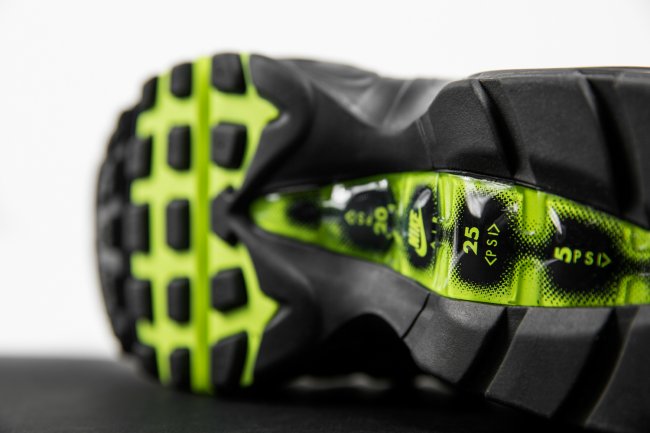 Air Max 95 的设计灵感来源于人体解剖图,设计师 Sergio Lozano 在 20 年前的灵光闪现,造就了这款经典鞋型。同 Air Max 家族的其他成员相比,Nike Swoosh 标志在鞋身上的体现并不突出,因为一开始根本就没有在设计中加入这个元素,Sergio Lozano 力求将 Air Max 95 打造成为一款独特而具有里程碑意义的鞋款。他确实成功了,可见式的前掌气垫和黑色的外底,都是 Nike 历史上的首创。