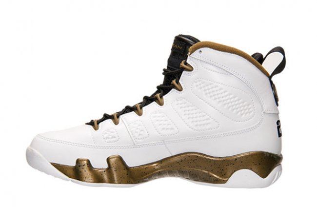 将于本月 22 日正式发售,Air Jordan 9 “Statue” 以白色鞋身为背景,细节以铜色呈现,鞋舌内侧的日期字样正好是雕像正式揭幕之日。