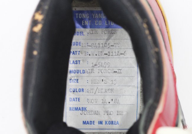 Jordan Pro BB 在外观上同 Air Jordan 1 几乎一样,但作为一双原型款式,在细节的处理上存在瑕疵,配色则以白黑红营造出公牛队氛围。目前这款 Jordan Pro BB 由 Kris Arnold 拥有,从鞋垫上的标签来看,这双球鞋诞生于 1984 年的 11 月 14 日,相比市售版本提前了快一年。