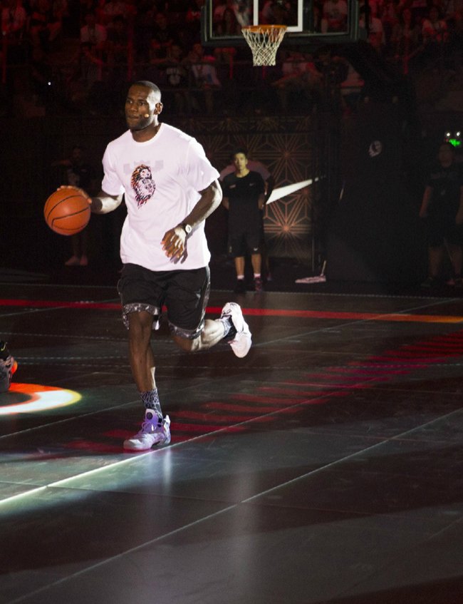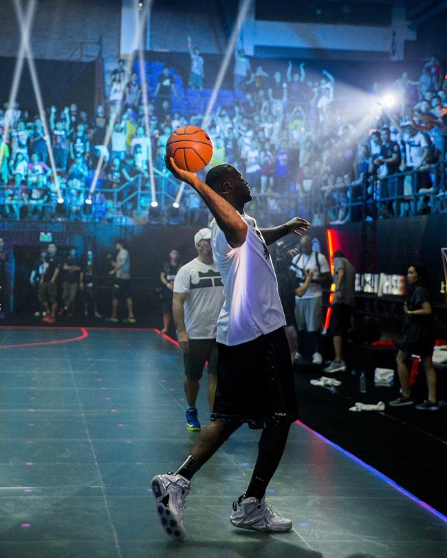 借助詹姆斯中国行的东风,Nike Basketball 和 NikeLab 适时推出同法国时尚品牌 Pigalle 的联名鞋款,此双 Pigalle x NikeLab LeBron 12 Elite 将于 8 月 18 日 19:00 在上海的 NikeLab X158 首发,而詹姆斯在上海亮相之时也穿着了此款联名精品。
