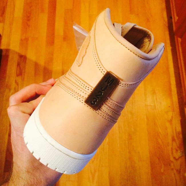 看起来同前者颇为相似,这双 Air Jordan 1 Retro OG High “Tan” 可谓是 Pinnacle 版本的亲生兄弟,鞋面皮革颜色略有不同,而飞翼标志也并未采用金属打造,鞋舌 Nike Air 刺绣采用皮革印压工艺呈现,后跟带有 MJ23 铭牌。