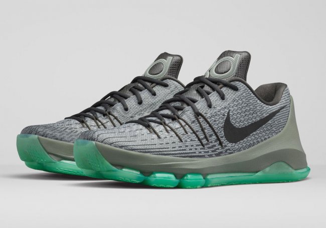 此款 KD8 “Hunt’s Hill Night” 以沉稳低调的整体视觉效果呈现,灰色 Flyweave 鞋面,搭配黑色的 Swoosh、内衬和鞋舌,外底的夜光绿托衬带来更为细腻的层次感受。