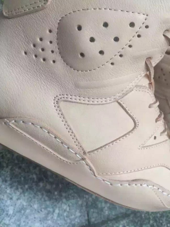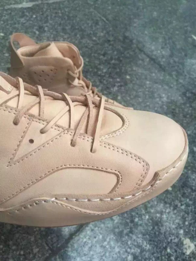 手工奢侈品工作室 Hender Scheme 再次带来他们的 Air Jordan 再造作品,此番选中了 Air Jordan 6 六代鞋型,依然是延续了之前的材质质感和精细做工,选用浅色的优质皮革再现 Air Jordan 6 鞋身轮廓和细节。 一针一线都由手工缝制,鞋带也采用皮革打造。经典造型再现,而视觉感受完全刷新。