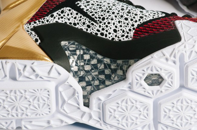 同上一代 What The LeBron 致敬历史版本 LeBron 战靴所不同,LeBron 12 的此款配色不仅回顾了多个 12 代球鞋配色,还致敬了 Nike 的历史,已经多款 Nike 经典作品。