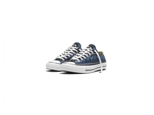 35 周年的 Stussy 携手 Converse 带来联名系列,选用旗下最为著名的 Chuck Taylor All Star ’70 鞋型,将 Stussy 最为经典的 80 年代复古 Tom Tom 印花在鞋身上呈现。