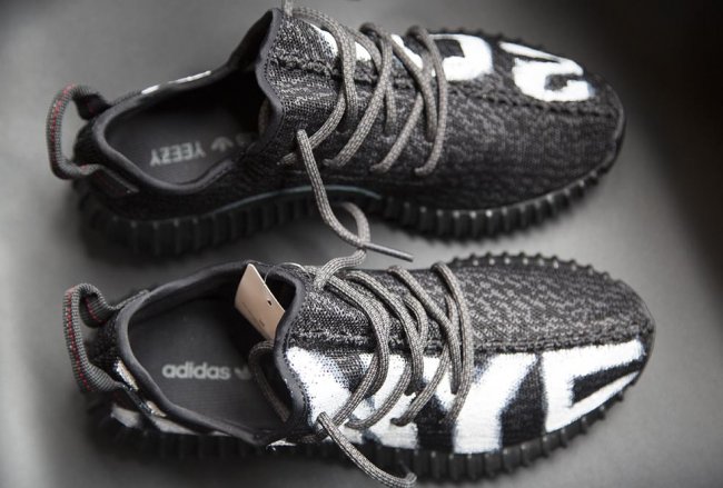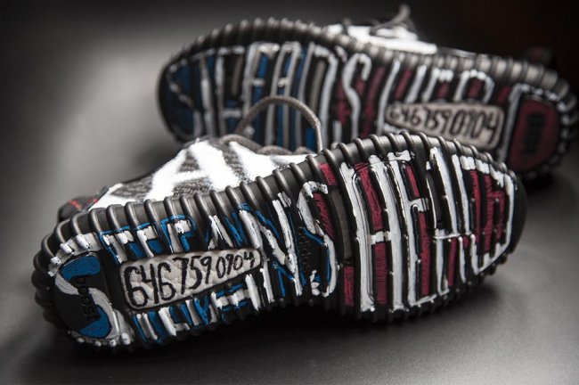 一款基于黑色配色 Yeezy 350 Boost 的定制鞋款亮相,而白色的涂鸦文字则直接契合 Kanye West 在 VMA 上的总统宣言。 此款 adidas Yeezy 350 Boost “Kanye 2020” 在左右鞋款上分别呈现硕大的 KANYE 和 2020 字样,颇具街头涂鸦文化风范,鞋底上则带有设计者 Stefan 的名字和电话号码。