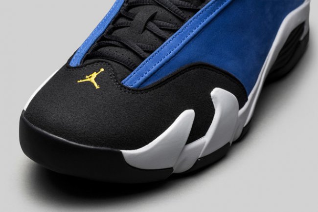 源自 MJ 乔丹高中母校的 Laney 兰尼配色再现,此番登陆 Air Jordan 14 Low 低帮鞋型,结合 MJ 最爱的法拉利跑车,呈现出此款 Air Jordan 14 Low “Laney” 的动感装扮。 以皇家蓝和黑色拼接打造鞋身,麂皮材质凸显质感,白色中底和黄色细节的抢眼反差点缀画龙点睛带来亮点,将于 10 月 3 日正式发售。低帮鞋型的灵巧显现,Air Jordan 14 Low 法拉利造型的抢眼登场,不容错过的兰尼精品。 货号:807511-405 发售日期:10 月 3 日 相关信息: Air Jordan 14 Low “Laney” 兰尼配色上脚实拍