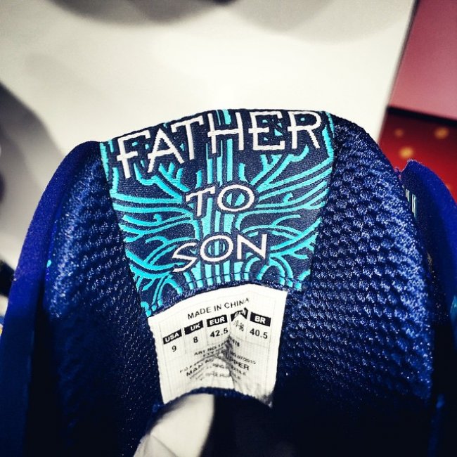 另外一款 Under Armour Curry 2 “Father to Son” 则是致敬库里父亲同儿子之间的亲情和帮助,以戴尔·库里曾经效力的夏洛特黄蜂球队配色呈现,鞋舌内的 FATHER TO SON 字样和图纹颇具特点。