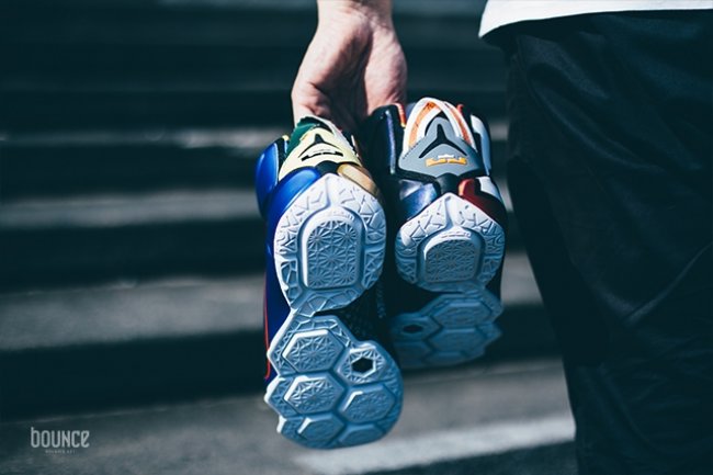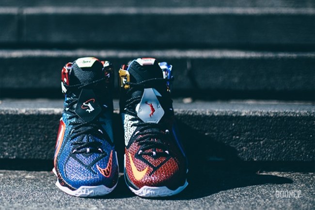 LeBron 12 SE “What The” 在融合多款 LeBron 战靴经典元素的同时,也以浓厚的致敬味道,将 Nike 品牌在历史上的重要里程碑刻画在鞋身上。无论是致敬俄勒冈的复古 Nike Logo,还是 Swingman 同 Dunkman Logo 的融合变形,无论是蓝喷装扮的 Posite 加持,还是抢眼的 Safari 纹理,这些 LeBron 系列之外的元素第一次在 LeBron 球鞋上呈现,也将成为本系列的一个重要里程碑。