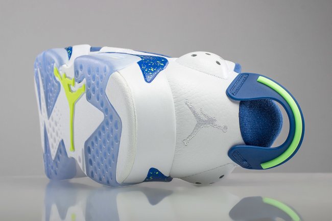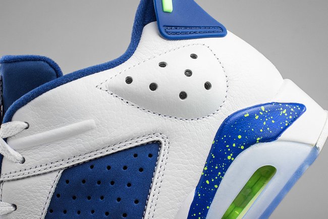 带来活力装扮的 Air Jordan 6 Low “Insignia Blue” 实物清晰图赏,以蓝白撞色呈现,细节注入幽灵绿点缀,挑起视觉亮点。