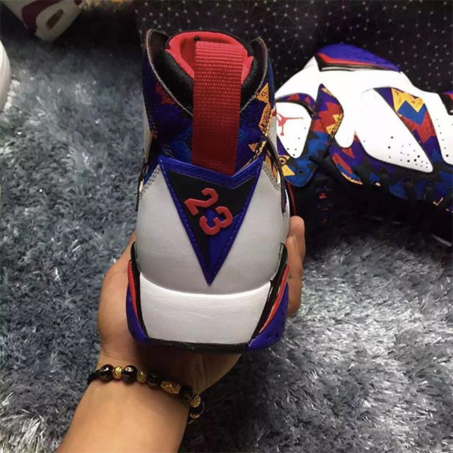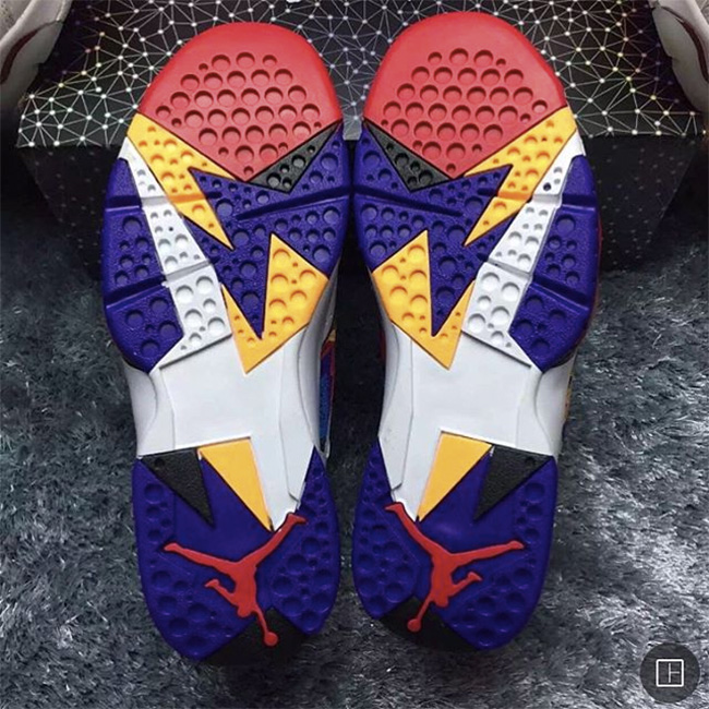 以乔丹同拉里伯德早年合作的麦当劳广告为灵感来源,Air Jordan 7 “Nothing But Net” 以白色鞋身背景辅以毛衣纹理图案。而这个灵感来源也是 MJ 一直想呈现出来的一个奇思妙想,以他在电视广告中所穿着的斑斓毛衣为原型,在 Air Jordan 7 经典的多彩装扮下带来更为缤纷夺目的视觉体验。 将于 11 月 14 日正式发售,多彩细节的蓝红黑黄白,层次感受丰富而亮点十足。 货号:304775-142 发售日期:11 月 14 日