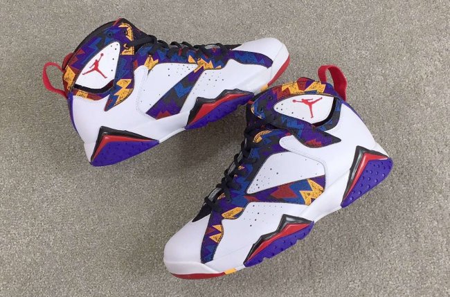 毛衣配色 Air Jordan 7 “Nothing But Net” 带来全新实物图片,白色皮革鞋面为背景,多彩细节的缤纷装饰凸显视觉抓力,同 Air Jordan 7 一贯的多彩拼接呈现颇为契合。
