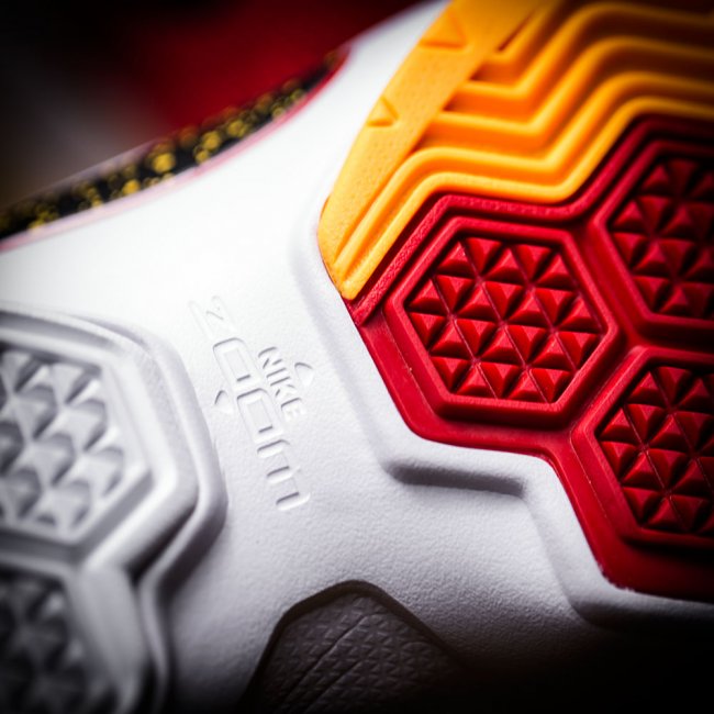Cavs 骑士队红黑白装扮登陆 Nike LeBron Soldier 9 鞋型,此款 Nike LeBron Soldier 9 “Cavs” 以红色鞋身辅以黑色绑带,鞋身中部的白色部分以泼墨 Swoosh 点缀,细节的黄色注入则凸显骑士队风范。