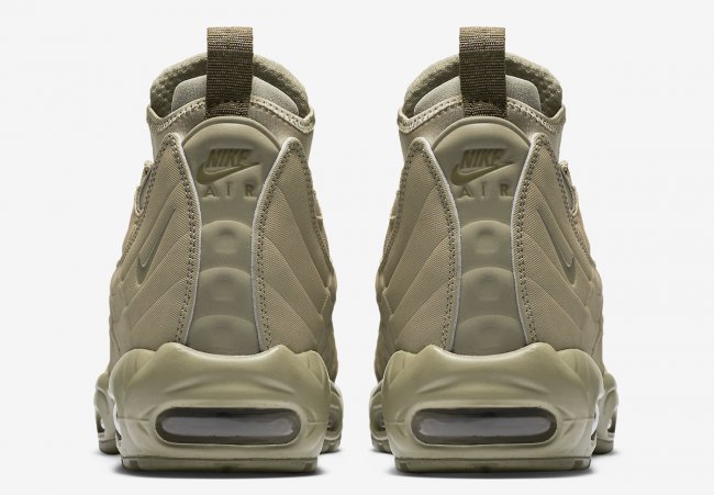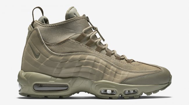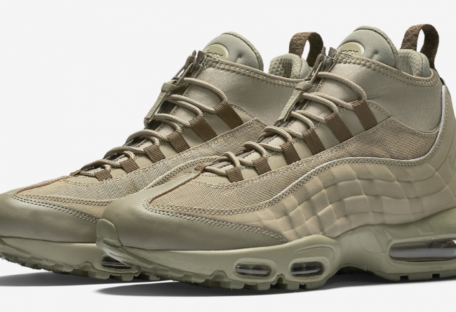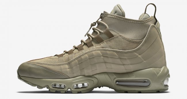 在 20 周年之际,Air Max 95 鞋型迎来了全新升级,以 Sneakerboot 鞋靴造型为改装主题,加入内靴并延伸至中帮,鞋舌更是增加了拉链设定,以提升鞋款的保暖和防水防污等户外性能。 首发两款配色,都以纯色呈现,一款为全黑劲酷装扮,货号为 806809-002,另外一款则以泥土黄呈现,货号为 806809-200,上脚带来浓浓的户外工装风范,硬派风格十足。 将于 10 月 1 日起陆续在全球发售。