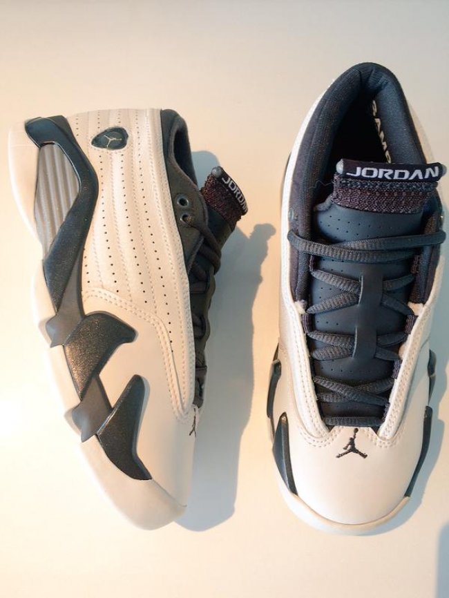 Air Jordan 14 Low 低帮鞋型将在十一月份带来一款 GS 女款专属配色,此款 Air Jordan 14 Low GS “Pewter” 以白色皮革鞋身为背景,以深色反差搭配带来丰富的层次感受,简洁大方而活力十足。