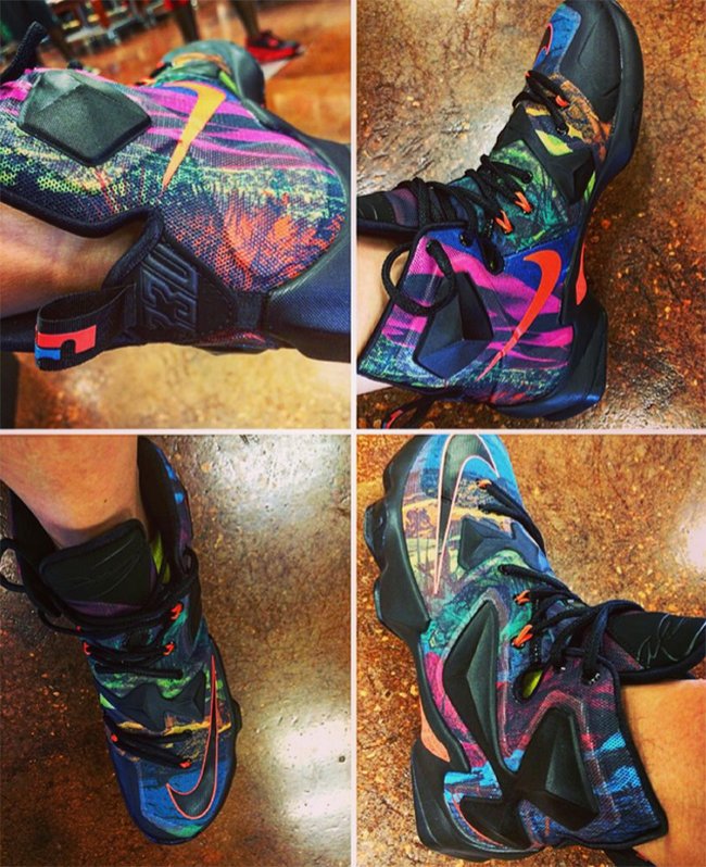 带来 LeBron 13 “Multicolor” 全新实物图片,多彩条纹覆盖的 Megafuse 鞋面成为了这双鞋款的亮点,看似杂乱但暗藏条理的鞋面渲染,颇有抽象派油画的风范,Posite、鞋底和鞋身细节则以黑色呈现。 目前尚无发售信息,我们将持续关注。
