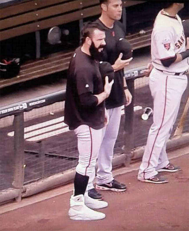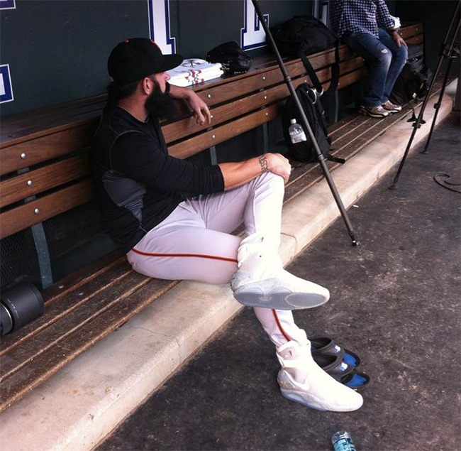 另外一位在棒球场上带来 Sneaker 大新闻的人物是洛杉矶巨人队的投手 Brian Wilson。他在 2011 年从拍卖上获得两双 Nike Air Mag,随后的公开亮相以这款未来之鞋上脚,自然成为了球鞋圈的头条新闻。