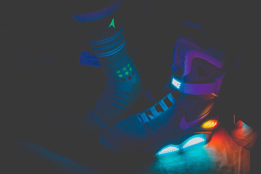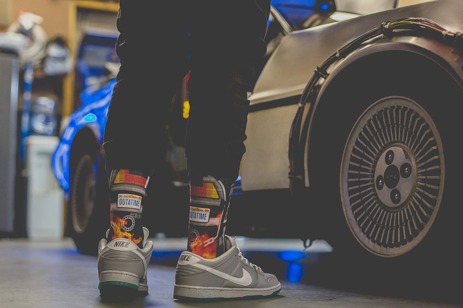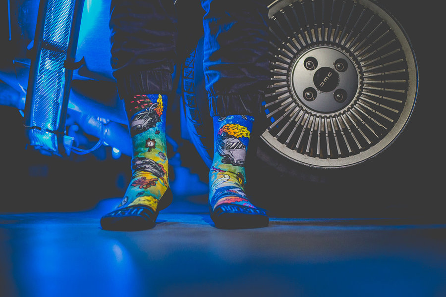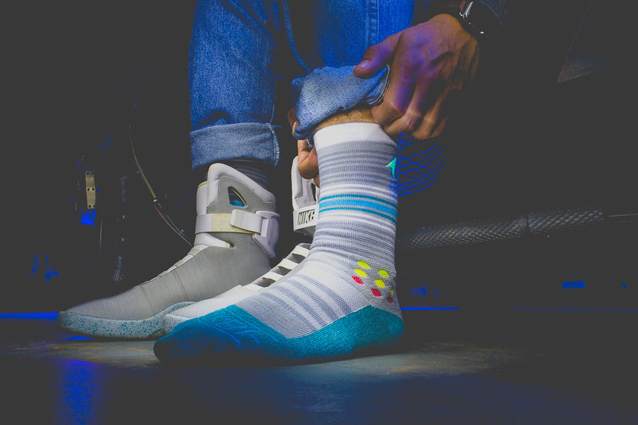 Air Mag 的火爆也带动了周边产品的继续丰富,除了我们带来的居家拖鞋的呆萌亮相,还有回到未来味道十足的袜款登场。 以电影《回到未来》中的多个经典元素为主题,袜款厂商 Rock ‘Em Apparel 带来多个系列,其中当然就包含了 Air Mag 主题。除此之外,还有悬浮滑板和各式炫彩夺目的电影元素呈现。
