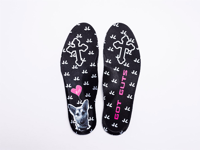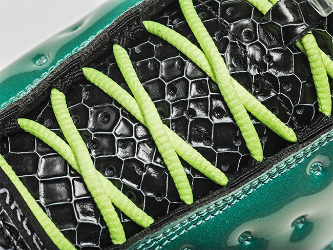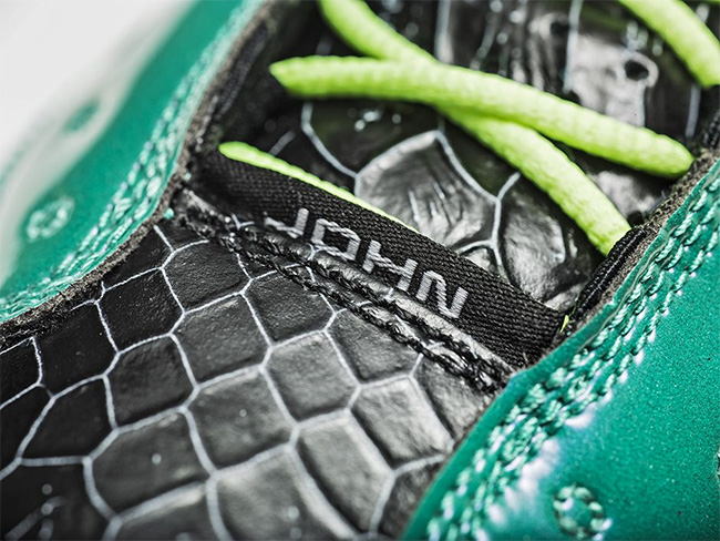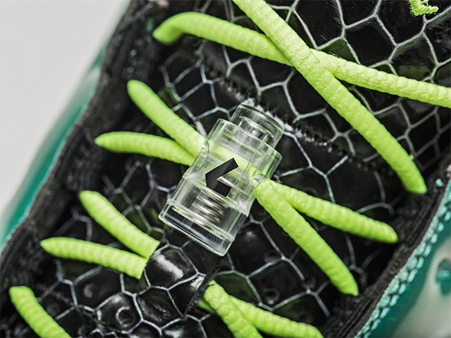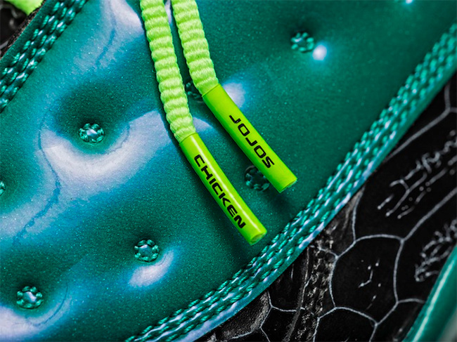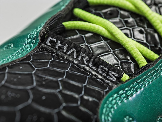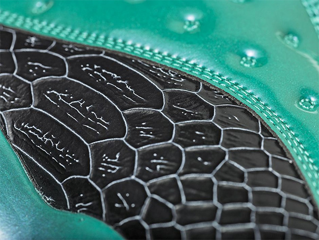 以黑色的鳞片纹理,辅以水绿色的漆皮包裹,再点缀荧光色鞋身细节和粉色外底。在抢眼的整体观感之外,丰富多彩的细节装饰,无一不体现小设计师的坚韧顽强和设计天赋。
