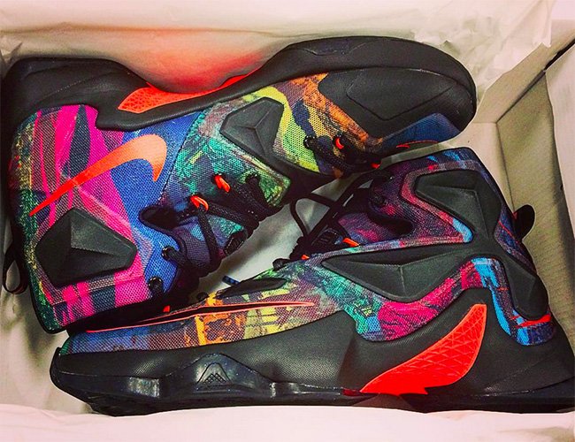 以深色背景带来斑斓的多彩装扮,Multicolor 配色登陆 LeBron 13,此番我们带来 GS 大童尺码的全新实物图片。有传言称将在明年的全明星周末期间正式发售,此款 LeBron 13 GS “Multicolor” 在 Megafuse 鞋面上带来层次感丰富、细节精美的多彩纹理,鞋面的视觉表现能力一览无余,Posite 材质和鞋舌则以黑色托衬,后跟则以 330 数字呈现,代表了詹姆斯的家乡 Akron。