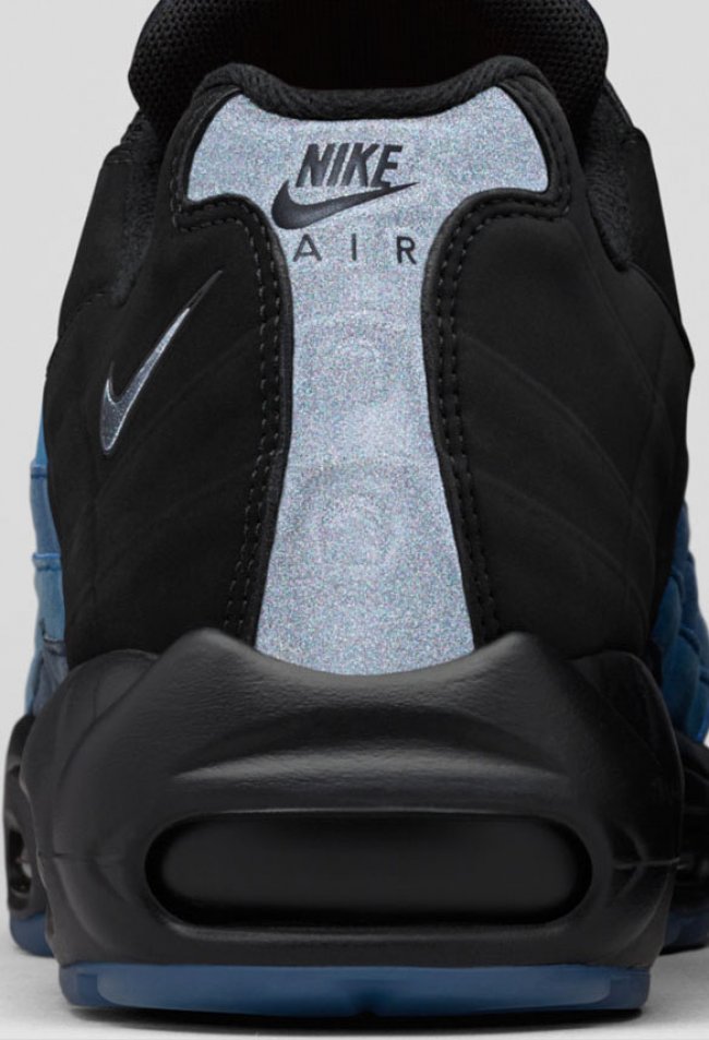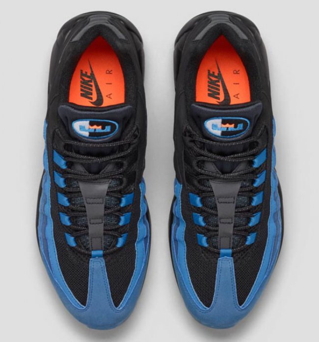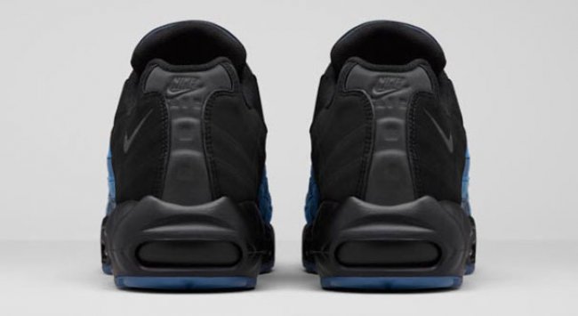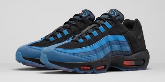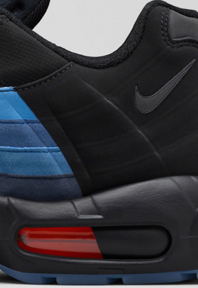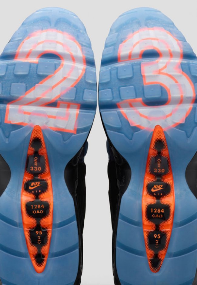 在 20 周年之际,Air Max 95 经典鞋型也带来多个同 LeBron James 的合作配色,灵感来源于詹姆斯儿时对于这款热门跑鞋的深刻记忆,除了同 LeBron 12 Low 的跨界融合,此番通过 Nike SNKRS App 发布了全新配色。 此款 Nike Air Max 95 “LeBron” 十足的詹姆斯个人元素呈现,蓝黑拼接打造鞋身,鞋舌的 LBJ Logo 和外底的数字 23 都直接表明了它的身份。而开窗气垫的红色点缀,则凸显抢眼亮点。