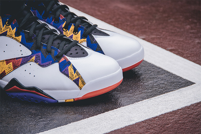 Nike 方面将带来毛衣配色 Air Jordan 7 “Bright Concord”,此款以 Michael Jordan 经典麦当劳广告为主题,将乔帮主在片中亲穿的毛衣在 Air Jordan 7 鞋型上再现,白色皮革打造鞋身带来清爽活力,辅以多彩纹理的精致装扮,抢眼指数不低,上脚也是清爽有余而冲击力十足,喜欢白鞋和追求回头率的朋友不妨关注。