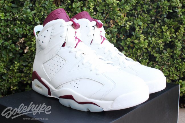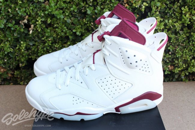 将于 12 月 5 日正式发售的 Air Jordan 6 “Maroon” 现已亮相 eBay,售价为 $355 美元,点击查看。这款魔力红配色 Air Jordan 6 “Maroon” 初次发售于 1991 年,2015 年是它的首次复刻。