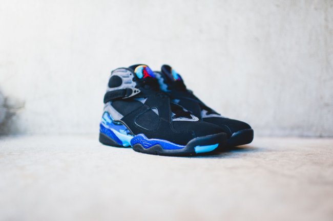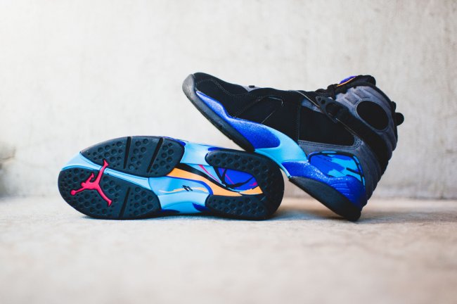 时隔 8 年后的完美回归,Air Jordan 8 “Aqua” 2015 款将在今年的黑色星期五正式发售。以忠于元年的黑色牛巴革鞋面和经典黑蓝 Aqua 细节呈现,在凸显 Air Jordan 8 八代鞋型的厚实沉稳之余,中底和外底颇具层次感受的水蓝装扮,加上毛巾鞋舌蓝黑红的精致点缀,都带来质感凸显而不失亮点的视觉感受。