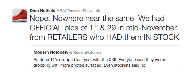 从两张不同的球鞋发售清单上,都显示年底的 12 月 23 日将有一个 Air Jordan 11 & Air Jordan XX9 套装发售,作为圣诞套装登台亮相。参考去年的例子,Pantone 配色套装以 $500 美元的价格发售,今年如若是同样的方式和同样的鞋款组合,那价格也应该是 $500 美元。