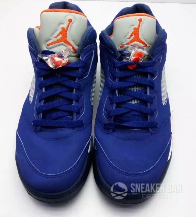 昨天曝光的疑似纽约尼克斯配色 Air Jordan 5 Low “Knicks” 继续带来更多实物图片。以皇家蓝牛巴革鞋身辅以 3M 银灰鞋舌,Jumpman Logo 和中底喷炎装饰则以橙红色抢眼点缀,在营造 Knicks 球队氛围的同时,也带来了颇高的抢眼指数。 货号为 819171-417,目前尚无发售日期。Air Jordan 5 Low 低帮鞋型将在明年带来众多配色,在更为灵巧的同时,丰富的配色呈现也已经让我们眼花缭乱了。