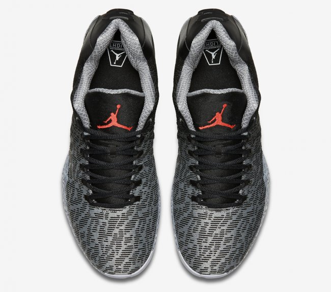 同样以 Flyweave 编织鞋面打造,降低了鞋帮高度显得更为灵巧。首发配色以黑灰编织打造鞋身,鞋舌 Jumpman Logo 则以红外色点缀,反差抢眼效果十足,后跟则以左右 23 数字呈现。