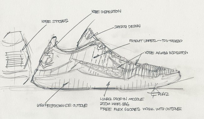 设计师为 Eric Avar,并非之前传言的 Tinker Hatfield。Eric Avar 也是一位颇具才华的球鞋设计专家,同科比有着颇为密切的关系。作为 Huarache 2K4 之父,Eric 参与了众多经典鞋型和重要科技的设计与研发工作,其中包括喷泡 Posite、Free 鞋底、Flywire 动态飞线,科比战靴 ZK3、ZK4、ZK5、Kobe 8、Kobe 9、Kobe 10,以及即将复刻回归的 Hyperdunk ’08 都是他的经典作品。