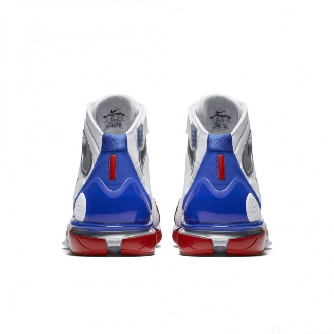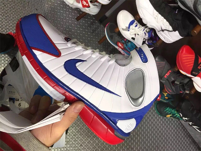 眼前这双 2016 款首发配色以白蓝红装扮带来 ASG 近似效果,经典外观依旧,尚不清楚是否减配。