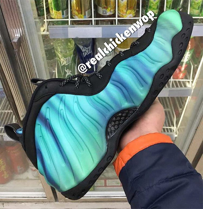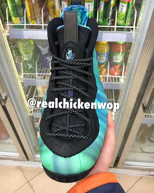 极光喷 Nike Air Foamposite One “Northern Lights” 果然很快曝光了更为清晰的实物图片,让我们得以一览其极光鞋面的真身。鞋款细节也更为清楚的展露出来,除了炫彩的发泡鞋面,黑色皮革鞋领同黑色不透明外底相呼应,鞋垫也以极光图案呈现。细节众多的 3M 反光元素则亮点十足,在弱光环境中同极光鞋面一同营造不凡的视觉效果。