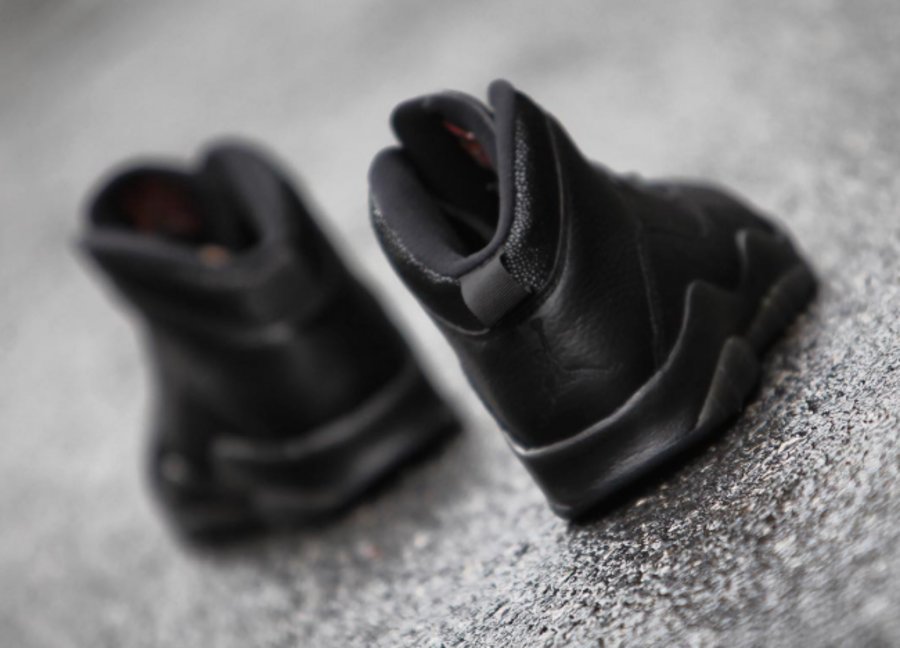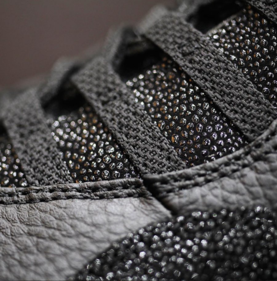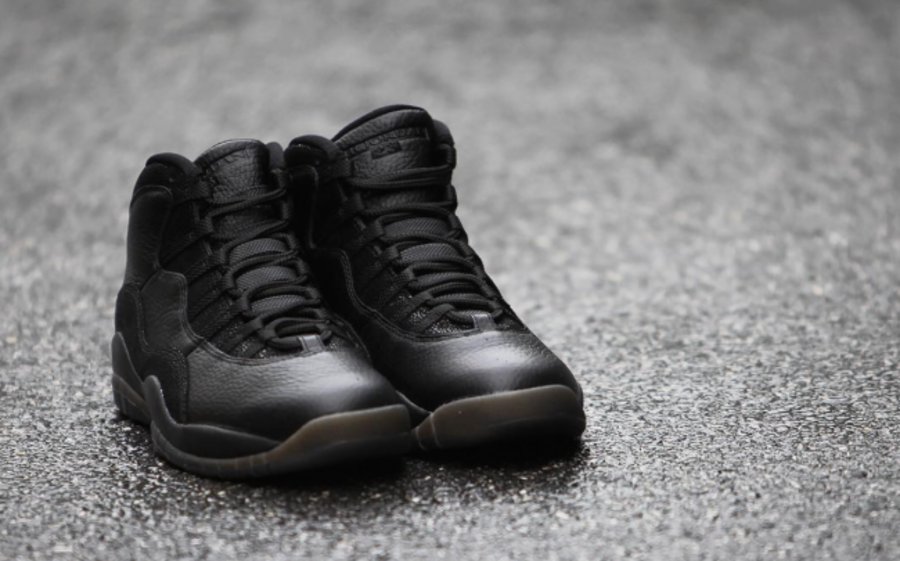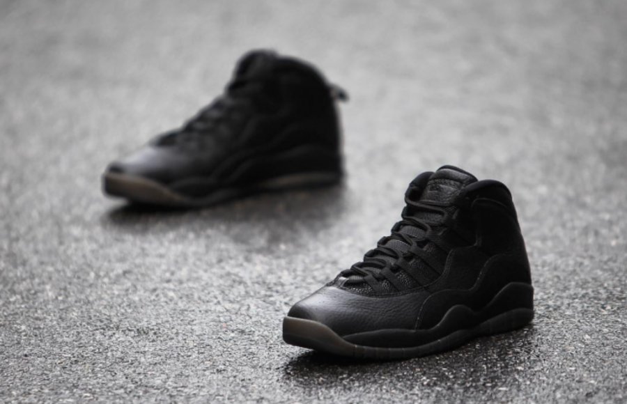 在 Air Jordan 10 十代鞋型的经典造型之上,以低调内敛的全黑贯穿,细节以珍珠鱼皮装饰,细腻的纹理和光泽效果凸显其精致风范。选用的优质黑色皮革也带来精美的质感体验,黑色水晶外底以金粉点缀,近赏之下的华丽本质一览无余,营造了低调的奢华感受。