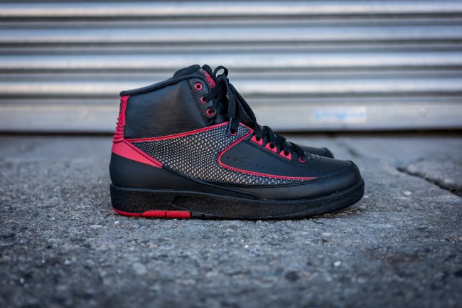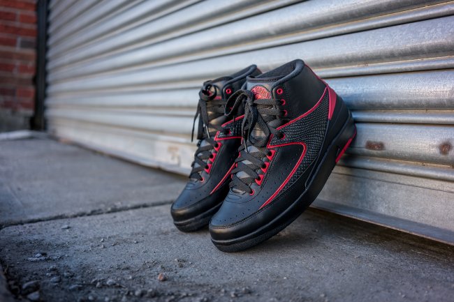经典的公牛队黑红配色首次降临 Air Jordan 2 二代鞋型,带来近似 Bred 配色的完美呈现。