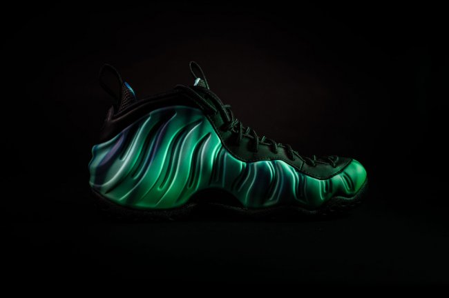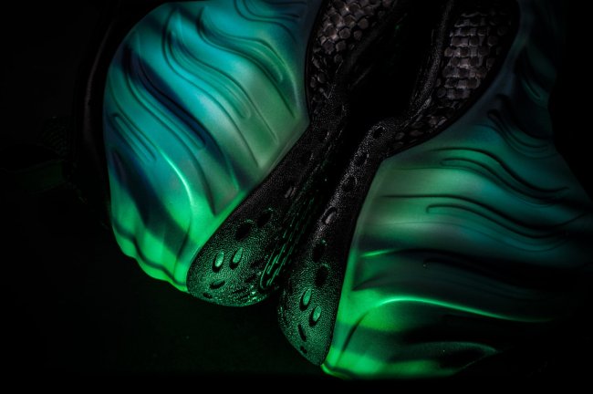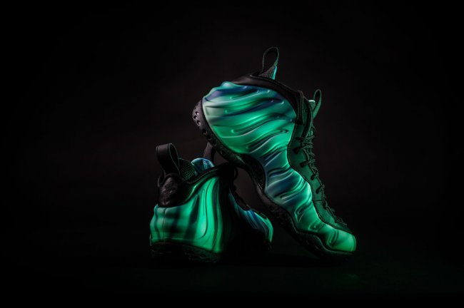 喷泡系列再次在全明星周末来临之际带来全明星主题的惊艳呈现,此番选用了北极光作为视觉主题,极光喷 Nike Air Foamposite One PRM AS QS “Northern Lights” 在发泡鞋面上渲染了逼真的极光氛围。