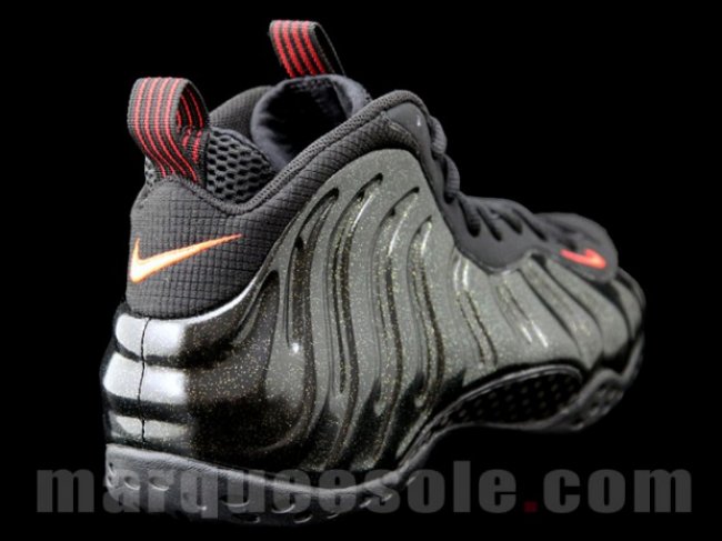 说它是新品也不太适合,因为早在 2012 年,这款 Nike Air Foamposite One “Gold Speckle” 就已经曝光了实物。以黑色主色调搭配红色的细节点缀,以金属光泽呈现的黑色发泡鞋面以金色的细微斑点装饰,满天星的金粉效果颇具视觉冲击力。